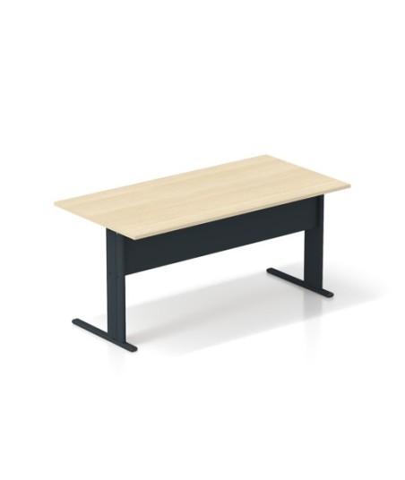 Estrutura: Ilhargas com calhas verticais, para passagem de fios elétricos.¶¶Base da Ilharga: tubo oval de aço 50x25x2 mm.¶Ilhargas com 2 niveladores, com base em Nylon. ¶Dois topos em ABS.¶ ¶Travamento em chapa de aço laminado a frio, que permite a passagem de fios, passagem protegida com uma borracha. ¶Este travamento apresenta também passa-fios em ABS.¶¶Avental em chapa de aço laminado a frio, com um passa-fios em ABS.¶Tampo em aglomerado de madeira revestido a papeis melaminicos de 25mm.