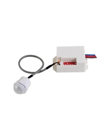 Com identificação automática dia/noite¶Sensibilidade à luz e tempo de ativação ajustáveis¶Para montagem¶¶Tipo de interruptor: Relé¶Ângulo de deteção: 100°¶Alcance de deteção: 8 m (a 22 °C)¶¶Carga nominal:¶Tungsténio: max. 800 W - max. 3.3 A¶Fluorescente: máx. 200 W - máx. 1.25 A¶Alimentação elétrica: 220-240 VAC 50 Hz¶¶Temperatura de funcionamento: -10 °C a +40 °C¶Humidade de trabalho: < 93 % HR¶Interruptor de atraso: 5 s, 30 s, 1 min, 3 min, 5 min, 8 min¶Controlo da luz: < 3 lx a 2000 lx¶¶Comprimento do cabo: ± 18 cm¶Peso: ± 41 g¶Dimensões:¶Parte oculta (controlador): 55 x 25 x 35 mm¶Parte visível: Ø 22 x 10 mm