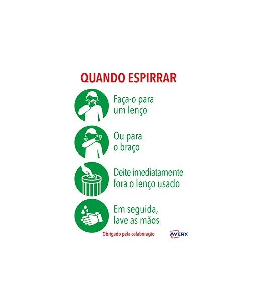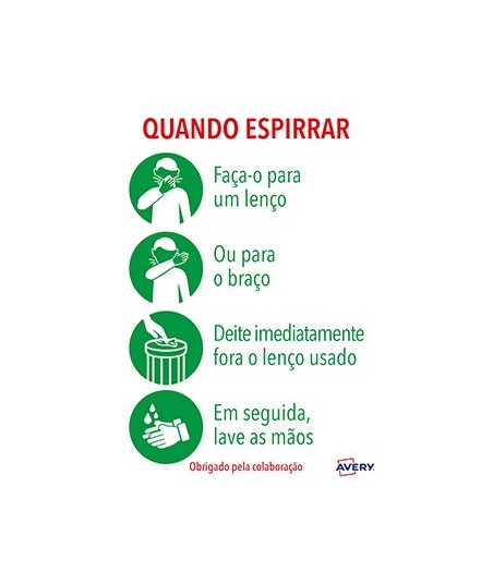 "Quando Espirrar, Faça-o para um lenço, Ou para o braço, Deite imediatamento fora o lenço usado, em seguida lave as mãos"¶¶Etiquetas em polietileno¶Pacote de 2 folhas A4 ¶Produzido em material adesivo extra resistente