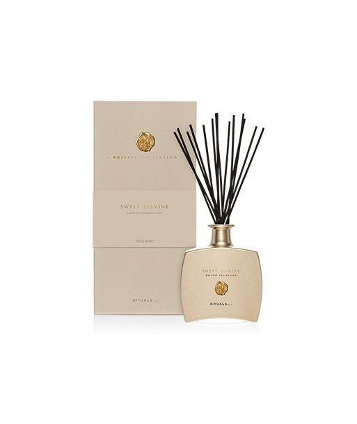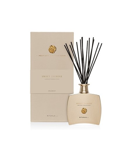 PRIVATE COLLECTION - COLEÇÃO HOME  CONCEBIDA PARA QUE SE SINTA BEM. Melhore o seu estado de espírito, enriqueça a sua atmosfera e acalme a sua mente com as nossas fragrâncias exclusivas. Luxo em Casa, abra as portas da sua casa às nossas fragrâncias emblemáticas e crie o seu refúgio pessoal. Descubra a luxuosa coleção Home da Rituals. Concebida para que se sinta bem.¶¶Crie um ambiente doce e romântico com estes luxuosos sticks perfumadores da nossa Private Collection. Com vibrantes notas de saída afrutadas, à base de citrinos e frutos silvestres que dão lugar a uma harmonia de flores como a peónia e o muguet. A madeira de sândalo dá elegância e um toque de calor à fragrância.¶¶O frasco de um design extraordinário é também uma forma elegante de perfumar a sua casa. Os sticks perfumadores proporcionam uma fragrância magnífica e subtil sem ter de os virar. No entanto, se quiser uma experiência de perfume mais intensa, pode virar os sticks mais frequentemente, para que se adequem às suas preferências. Desfrute de um ambiente elegante e especial até 5 meses e combine os sticks perfumadores com a vela do mesmo aroma para enriquecer a sua experiência de fragrância.¶¶Coloque os 14 sticks no frasco de fragrância para que absorvam o óleo. Os sticks perfumadores vão perfumar naturalmente a sua casa. Os sticks perfumadores permitem que o óleo evapore continuamente, proporcionando uma fragrância subtil e luxuosa. Depois, lave as mãos com água e sabão. Reutilize a luxuosa caixa para guardar recordações.¶¶Nota: virar os sticks com frequência faz com que o óleo se gaste mais rapidamente.¶Dica: não utilize todos os sticks perfumadores da embalagem em divisões pequenas, para que o óleo dure mais tempo.¶¶JASMIM O jasmim é muito mais do que a sua fragrância doce e romântica sugere. Ajuda a relaxar e o seu perfume infunde uma sensação de calma na sua vida.