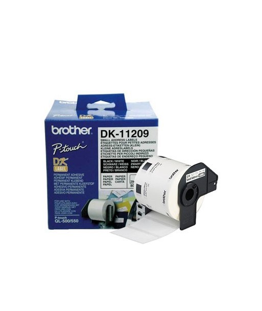 Etiquetas pré-cortadas de direção pequenas (Papel térmico). 800 etiquetas brancas de 29 x 62 mm¶¶O Rolo de etiquetas pré-cortadas DK11209 (texto preto sobre fundo branco) está desenhado para imprimir etiquetas com um tamanho de 29x62 mm à máxima velocidade, sem desperdiçar nenhuma. ¶A qualidade dos materiais utilizados assegura uma impressão clara e legível, juntamente com um adesivo de qualidade. ¶Pode incorporar de forma rápida e simples: imagens, logotipos, códigos de barras, datas ou qualquer outra informação.¶¶Dispositivos relacionados:¶¶¶Brother QL-500¶Brother QL-500A¶Brother QL-500BS¶Brother QL-500BW¶Brother QL-500 Series¶Brother QL-550¶Brother QL-560¶Brother QL-560 Series¶Brother QL-560VP¶Brother QL-560YX¶Brother QL-570¶Brother QL-580¶Brother QL-580N¶Brother QL-580 Series¶Brother QL-600¶Brother QL-600B¶Brother QL-600G¶Brother QL-600R¶Brother QL-650TD¶Brother QL-700¶Brother QL-710 Series¶Brother QL-710W¶Brother QL-710WSP¶Brother QL-720NW¶Brother QL-800¶Brother QL-810W¶Brother QL-820NW¶Brother QL-820NWB¶Brother QL-820 Series¶Brother QL-1050¶Brother QL-1050N¶Brother QL-1060N¶Brother QL-1060NX¶Brother QL-1100¶Brother QL-1100NWB¶Brother QL-1100 Series¶Brother QL-1110¶Brother QL-1110NWB¶