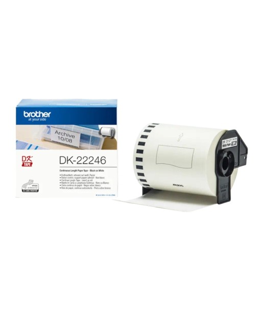Rolo para criar etiquetas autocolantes de tamanho personalizado. Fita contínua autocolante de papel térmico (branca). Largura: 103 mm. Comprimento: 30,48 m¶¶A fita contínua DK22246 permite criar etiquetas com tamanhos personalizados. Se o comprimento da informação a incluir nas etiquetas varia, as fitas contínuas são a recomendação da Brother. Pode incorporar imagens, códigos de barras, datas ou qualquer outra informação de forma rápida e simples.¶¶Dispositivos relacionados:¶¶Brother QL-1050N¶Brother QL 1060N¶Brother QL-1060NX¶Brother QL-1100¶Brother QL-1100NWB¶Brother QL-1100 Series¶Brother QL-1110¶Brother QL-1110NWB