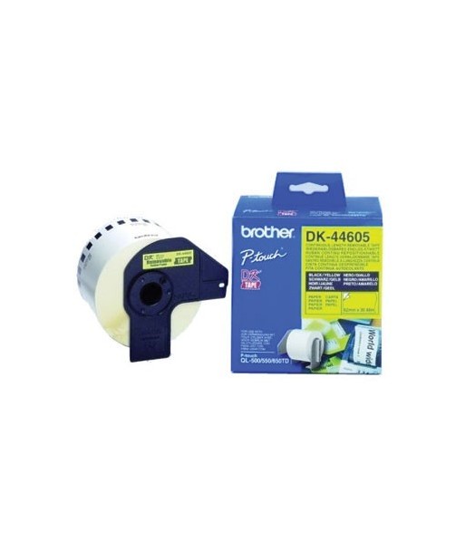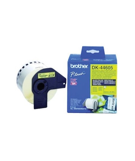 Rolo para criar etiquetas autocolantes de tamanho personalizado. Fita contínua de Papel térmico removível (amarela). Largura: 62 mm. Comprimento: 30,48 m¶¶A Fita contínua DK44605 (texto preto sobre fundo amarelo) permite criar etiquetas com tamanhos personalizados. O fundo amarelo permite que a informação impressa na etiqueta se destaque mais que num fundo branco. Desenhada para uma identificação temporária, o adesivo foi desenvolvido para descolar a etiqueta seja mais fácil sem deixar restos de papel ou cola. Se o comprimento da informação a incluir na etiqueta varia, as fitas contínuas são a melhor opção. Pode incorporar de forma rápida e simples: imagens, logotipos, códigos de barras, datas ou qualquer outra informação.¶¶Dispositivos Relacionados:¶¶Brother QL-500¶Brother QL-500A¶Brother QL-500BS¶Brother QL-500BW¶Brother QL-500 Series¶Brother QL-550¶Brother QL-560¶Brother QL-560 Series¶Brother QL-560VP¶Brother QL-560YX¶Brother QL-570¶Brother QL-580¶Brother QL-580N¶Brother QL-580 Series¶Brother QL-600¶Brother QL-600B¶Brother QL-600G¶Brother QL-600R¶Brother QL-650TD¶Brother QL-700¶Brother QL-710 Series¶Brother QL-710W¶Brother QL-710WSP¶Brother QL-720NW¶Brother QL-800¶Brother QL-810W¶Brother QL-820NW¶Brother QL-820NWB¶Brother QL-820 Series¶Brother QL-1050¶Brother QL-1050N¶Brother QL-1060N¶Brother QL-1060NX¶Brother QL-1100¶Brother QL-1100NWB¶Brother QL-1100 Series¶Brother QL-1110¶Brother QL-1110NWB