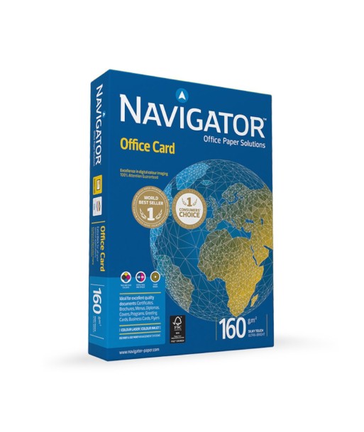 OFFICE CARD 160 g.m-2 / Excelente definição que dá vida às imagens.¶Ideal para: Certificados, Brochuras, Menus, Diplomas, Capas, Programas, Postais, Cartões de visita, Panfletos, etc.¶¶EXCELÊNCIA EM IMPRESSÃO DIGITAL A CORES¶Perfeito para melhorar a qualidade das imagens com alto contraste e definição.¶¶DOCUMENTOS A CORES IMPRESSIONANTES¶Garantia de 100% de atenção, exibindo cores reais e imagens vívidas.¶¶Uso garantido em todos os equipamentos de escritório, para aplicações de alta qualidade e especialidade.¶¶QUALIDADE MELHORADA¶Melhora a qualidade dos seus documentos.¶O Office Card é ideal para aprimorar a qualidade de todos os tipos de documentos a cores, desde impressoras Inkjet e a laser até cópias coloridas.¶¶A4 ¶250 Folhas/Resma¶¶