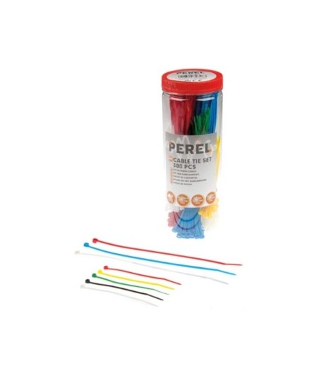 Conteúdo¶2.5 x 100 mm: 25 pcs Verde, 25 pcs Amarelo, 25 pcs Preto, 25 pcs Vermelho, 50 pcs Transparente¶3.5 x 200 mm: 50 pcs Vermelho, 50 pcs Azul, 50 pcs Transparente¶¶Diâmetro máximo¶2,5 x 100 mm: 20,5mm¶3,5 x 200 mm: 52,5mm¶¶Peso máximo¶2,5 x 100 mm: 8 kg¶3,5 x 200 mm: 18 kg¶¶Temperatura máxima de funcionamento: 85ºC