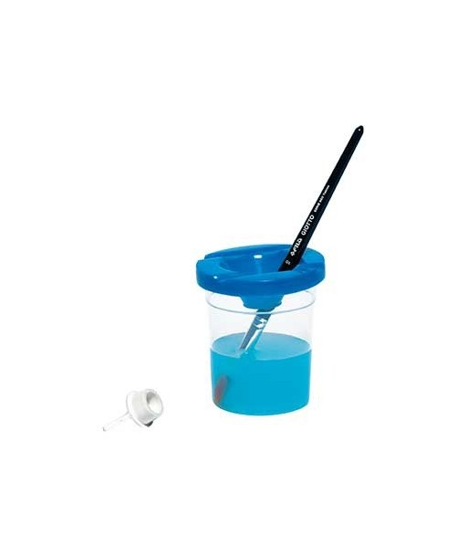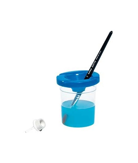O copo lava pinceis com tampa que também dá para deixar secar os pinceis, é muito fácil de lavar.