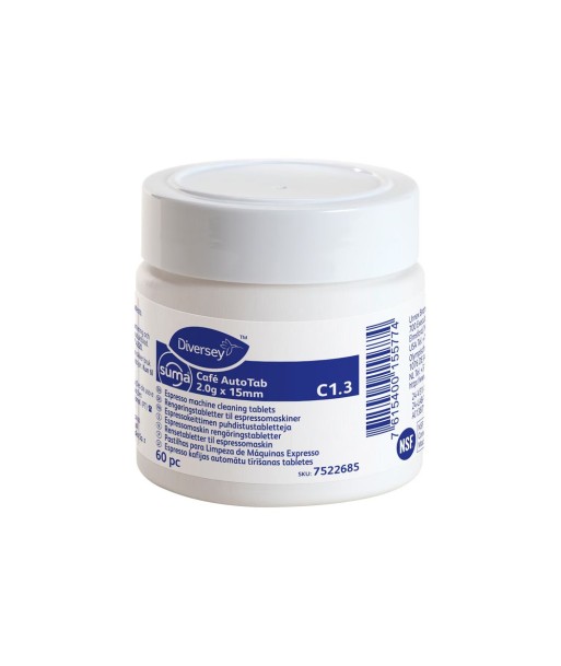 Pastilhas para limpeza de máquinas expresso ¶¶Descrição ¶Pastilhas para limpeza diária de máquinas de café de diversos tipos. Formulado para uma limpeza eficaz e um fácil enxaguamento, este produto pode ser utilizado para limpar máquinas expresso tradicionais, automáticas, e para a imersão das respetivas peças. ¶¶Benefícios ¶Formulado para uma limpeza eficaz e fácil enxaguamento. ¶Desenvolvido para uma ampla gama de máquinas expresso. ¶Isento de fosfatos e perfume, com componentes biodegradáveis , as embalagens são totalmente recicláveis. ¶¶Instruções de utilização ¶Máquinas expresso automáticas: ¶1. Destinado para utilização diária. ¶2. Inserir uma pastilha Suma Café AutoTab C1.3 na máquina e seguir as recomendações para manutenção e limpeza do fabricante da máquina. ¶¶Máquinas expresso tradicionais / Limpeza do grupo: ¶1. Inserir o filto cego no portafiltros e adicionar 1 pastilha por grupo. Inserir o portafiltros no grupo. ¶2. Inicar o ciclo de limpeza, descarregando a água durante 10 segundos, seguindo-se uma pausa de 10 segundos. Repetir 5 vezes. ¶3. Remover o portafiltros e enxaguar o filtro cego. Repetir o passo (2) sem a pastilha Suma Café AutoTab C1.3 para enxaguar. ¶4. Tirar e deitar fora um café expresso para garantir que não permanecem resíduos. ¶¶Máquinas expresso tradicionais / Limpeza por imersão: ¶1. Mergulhar os filtros e as peças metálicas durante 30 minutos em 2 pastilhas por 1 L de água quente. ¶2. Enxaguar com água limpa ¶¶Máquinas expresso tradicionais / Limpeza das cafeteiras de café: ¶1. Tirar o café do equipamento e adicionar 4 pastilhas de Suma Café Café AutoTab C1.3 tablets por 2 L de água diretamente na cafeteira. ¶2. Fazer um ciclo completo no recipiente e deixar atuar por 30 minutos. ¶3. Realizar 2 ciclos completos para enxaguamento com água quente.¶¶Dados Técnicos ¶Aspeto: pastilha branca sólida ¶pH valor (10g/l): 10,0-10,3 ¶¶Segurança na armazenagem e manuseamento ¶Armazenar fechado na embalagem original, afastado de temperaturas extremas. Apenas para uso profissional/especialistas.¶