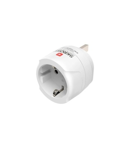 Permite a ligação de aparelhos elétricos em países com sistemas de tomadas britânicos¶Ficha de viagem compacta para quem viaja da Europa¶¶A ficha (7A/250V) pode ser utilizada na Grã-Bretanha, Hong Kong, Indonésia, Irlanda, Qatar, Quénia, Macau, Malásia, Maldivas, Malta, Maurícia, Arábia Saudita, Seychelles, Singapura, Emirados Árabes Unidos, Chipre¶¶Para utilização com tomadas do tipo G¶Para aparelhos com fichas dos tipos C e F¶¶Adequado para tensões de entrada de 100V - 250V¶Carga máxima ligada 3250 W¶¶Cor: Branco