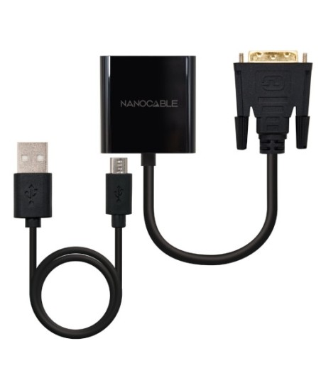 Conversor DVI para SVGA com conector macho DVI 24+1 em uma extremidade e conector fêmea D-sub HDB15 na outra.¶¶Ele permite que o usuário conecte um monitor VGA a um dispositivo equipado com uma saída DVI 24+1, evitando gastos com atualização do monitor por motivos de compatibilidade.¶¶Vídeo¶Modos de vídeos suportados: 1080p¶Resolução Máxima: 1600 x 1200 pixels¶Comprimento do cabo: 0,1m (+0,2m)¶¶Conectividade¶Interface do host: DVI-D¶Interface de saída: VGA¶Gestão de energia¶Energia por USB: Sim¶¶Cor¶Cor da caixa: Preto¶Aprovação regulamentar¶Aprovações Regulamentares: RoHS¶¶Informações da embalagem:¶Peso aprox. (kg): 0,075¶Medidas aprox. (mm) altura/largura/comprimento: 120/160/15¶