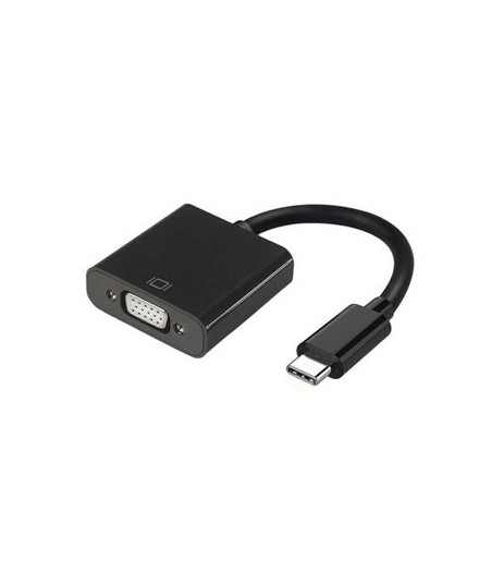 Conversor USB-C para VGA, com conector USB-C em uma extremidade e VGA fêmea na outra.¶Permite transmitir sinais de uma fonte USB-C para um monitor VGA.¶Nenhum software ou driver necessário, uma solução totalmente plug and play¶¶Suporta Resolução máxima VGA 1920x1200@60Hz¶Compativel: Macbook Pro, Macbook porta Thunderbolt 3, Google Chromebook, etc.¶Comprimento 15 cm¶Cor: Negro¶Norma: RoHS, CE¶