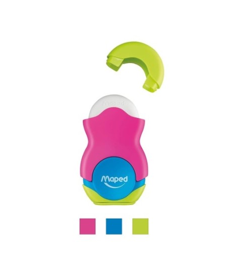 ! OFERTA DE EXPOSITOR na compra de 24 unidades !¶¶Borracha e afia-lápis 2 em 1 em cores vivas e divertidas¶Fácil de utilizar¶Afia com recipiente e borracha com tampa protetora¶¶Cor: Sortido - Entrega Aleatória