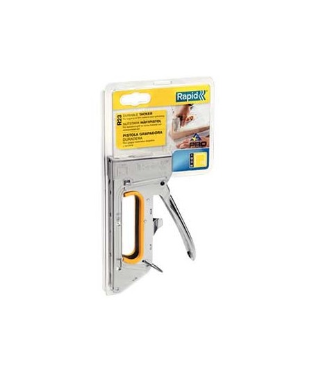 Uma pistola de agrafos de metal leve e fácil de utilizar, ideal para trabalhos profissionais exigentes e operações de precisão.¶O desempenho superior e a vida útil significam que a R23E pode facilmente suportar uma utilização regular. ¶¶Este modelo é perfeito para utilizadores com mãos mais pequenas e pode ser aplicado em diversas tarefas, incluindo estofos de mobiliário ou fixação de tecidos mais finos, couro, papel, etiquetas ou têxteis sensíveis.¶¶Invólucro totalmente em aço e peças de desgaste no interior¶Sistema de carregamento de funcionamento suave e mecanismo sem recuo¶¶Usa Agrafos 13/4, 13/6 e 13/8¶¶Material: Aço¶Dimensões (L x A x P): 27 x 150 x 279 mm