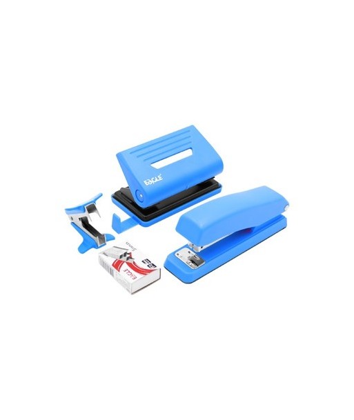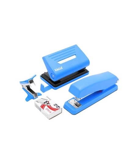 Conjunto Agrafador+ Furador + Saca Agrafos Eagle Azul Néon