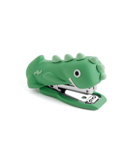 Mini agrafador infantil de borracha macia com 400 agrafos incluídos Nº10.¶Design divertido e compacto, presente escolar original, papelaria bonita para meninos, meninas e uso diário na escola.¶¶Com o seu tamanho compacto 70 x 45 x 25 mm e design ergonómico, este agrafador encaixa perfeitamente em mãos pequenas.¶Ideal para a volta às aulas ou para ter na secretária infantil.¶¶Criado com formas de adoráveis animais, transforma qualquer tarefa escolar numa experiência divertida.¶Uma mini ferramenta que combina funcionalidade com muita ternura.¶¶Perfeito para usar em casa, na escola ou em trabalhos manuais.¶É resistente e fácil de usar, ideal para acompanhar os mais pequenos no dia a dia ou como um presente encantador.¶¶Cada unidade inclui uma recarga de 400 agrafes Nº10 numa caixa de cartão, pronto a usar desde o primeiro momento.¶Praticidade e encanto num único produto.¶¶Com a sua textura de borracha e design de dinossauro, este modelo verde traz um toque selvagem e simpático à secretária de qualquer criança.¶Perfeito para pequenos exploradores cheios de imaginação!¶¶