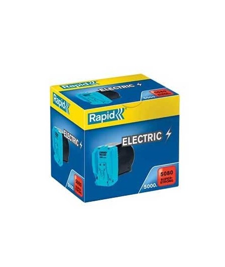 Agrafos em cassete especialmente concebidos para os agrafadores eléctricos Rapid 5080E. ¶Com 1 x 5000 agrafos. ¶De fácil colocação. ¶Fabricados em arame de elevada qualidade. ¶¶Agrafa até 80 folhas (80g).