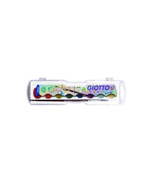 Giotto Pastilhas Aguarela Glitter¶¶As pastilhas de aguarelas com efeito glitter. Com uma só pequena porção de água ficam diluídas para criar uma excelente solução de pintura. Podem- se lavar facilmente da pele com água e sabão e de maioria dos tecidos com um programa normal da maquina de lavar roupa. ¶¶Inclui 8 pastilhas e um pincel de ponta redonda Giotto série 400.