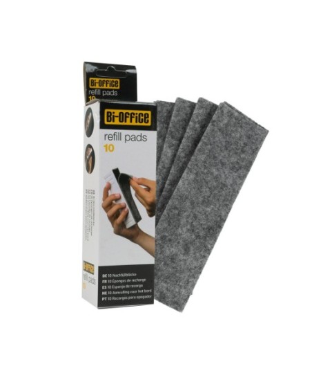 As recargas de Apagadores Magnéticos Bi-Office Professional são essenciais para a manutenção dos quadros de limpeza a seco e podem ser substituídos sempre que necessário.¶Muito resistentes e duráveis.¶¶Material: Feltro¶Embalagem com 10 unidades¶¶Apagador compatível:¶#19736040 - Apagador Magnético para Quadros Brancos 140x40x35mm