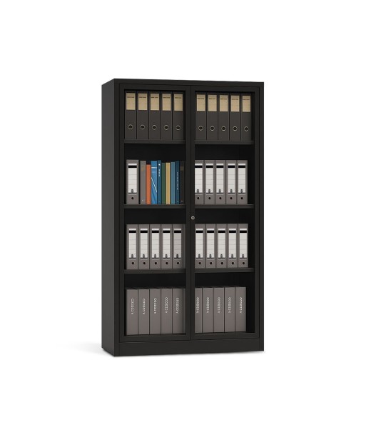 Armário alto com 2 portas de correr em vidro, sem tampo com 3 prateleiras com aro em chapa