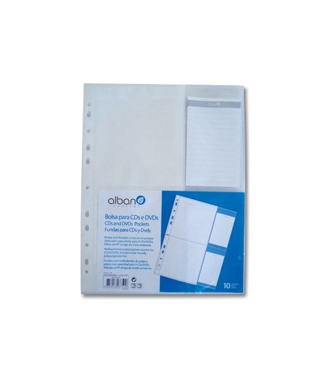 Bolsa de arquivo A4 com furação em poliéster ¶Para 4Cd's/Dvd's ¶Pack de 10un
