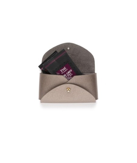 Prepare-se para ser preenchido com alguns saquinhos de chá à sua escolha para desfrutar em qualquer lugar e em qualquer ocasião, um grande momento de degustação.¶Este prático porta-bolsas cabe facilmente no bolso, na bolsa, na bagagem ... ¶Bolsa em pele sintética com fecho de botões em níquel, até 6 saquetas.¶¶Limpe com um pano húmido. ¶¶Largura: 12cm¶Profundidade: 4cm ¶Altura: 6cm¶Cor: Prata