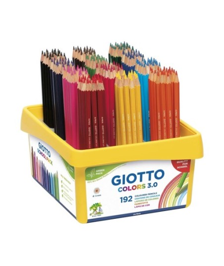 Artistas talentosos crescem na escola com Giotto Colors 3.0¶¶Pequenos artistas podem sobressair na escola, graças a estes lápis de cor vivos e desenhados para as crianças. ¶Corpo lacado na cor da mina com espaço para escrever o nome.¶¶Feitos de madeira certificada FSC proveniente de explorações florestais sustentáveis com uma mina super resistente de 3mm e corpo hexagonal com Ø6,8mm.¶¶Conjunto escolar com 192 unidades. 12 Cores (16 lápis de cada cor)¶¶¶