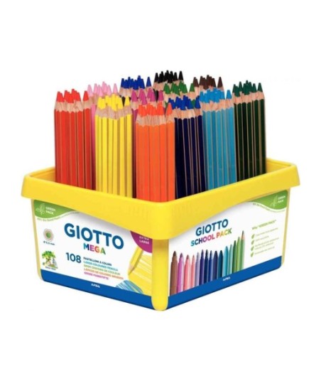 Giotto Mega, criatividade extra-larga na escola.¶¶Uma obra de arte necessita de uns bons lápis de cor. ¶Com uma mina grande e super resistente 5,5mm. Giotto Mega consegue durar mais graças a sua grande reserva de cor.¶Ideais para utilização em pré escolas pois permitem agarrar com maior facilidade.¶¶Lápis de cor hexagonal com corpo lacado à cor da mina. ¶Conjunto escolar com 108 unidades. 12 Cores¶¶Idade recomendada: +3anos