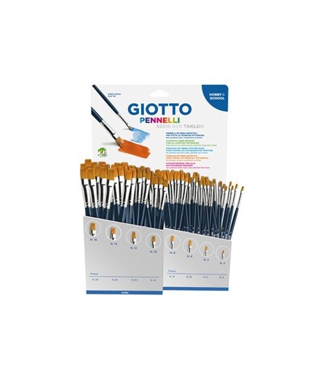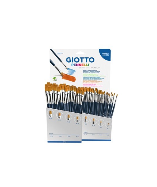 EXPOSITOR GIOTTO 600 TAKLON: A PONTA PLANA QUE SERVE PARA TUDO !! IDEAL PARA PONTOS DE VENDA !!¶¶Pincel de fibra sintética para todas as técnicas de pintura.¶Com uma ponta de superfície plana e suave, não perde pelo tem um excelente poder de absorção e retenção da cor. ¶Perfeito para pintar fundo e cobrir grandes superfícies. ¶Corpo revestido a azul escuro com ponta de metal.¶¶Expositor com 96 unidades:¶¶12x Pincel nº 2¶12x Pincel nº 4¶12x Pincel nº 6¶12x Pincel nº 8¶12x Pincel nº 10¶12x Pincel nº 12¶12x Pincel nº 14¶12x Pincel nº 16
