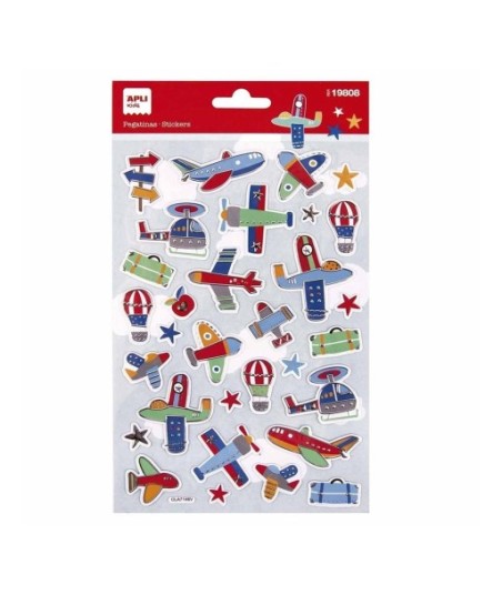 Saco de autocolantes maxi com tema de veículos aéreos. ¶¶Autocolantes com cola permanente, ideais para trabalhos de scrapbooking, colar em livros e pastas, decorar álbuns, cartas, convites e cartões, criar histórias ou simplesmente personalizar objetos.¶¶O saco contém 1 folha com 31 autocolantes de diferentes tamanhos.¶