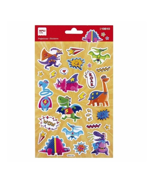 Maxi saco de autocolantes com o tema dos super-heróis dino. ¶¶Autocolantes permanentes, ideais para fazer scrapbooking, colar em livros e pastas, decorar álbuns, cartas, convites e cartões, criar histórias ou simplesmente personalizar objetos.¶¶O saco contém 1 folha com 25 autocolantes de dinossauros em forma de super-heróis em diferentes tamanhos e desenhos.¶