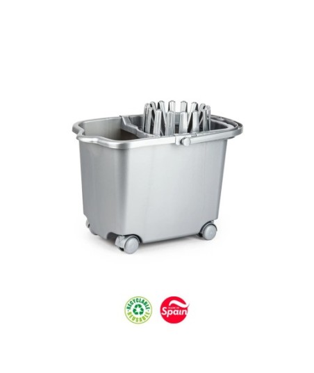 Balde com Espremedor Retangular c/ Rodas 15L Prata