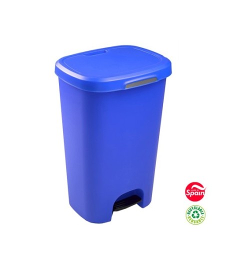 Este contentor com pedal tem uma capacidade de 50 litros. ¶Tem um design moderno e contemporâneo, concebido para ser utilizado no exterior, à vista de todos. ¶¶Cor: Azul¶Cor do pedal: Preto ¶Material: Plástico