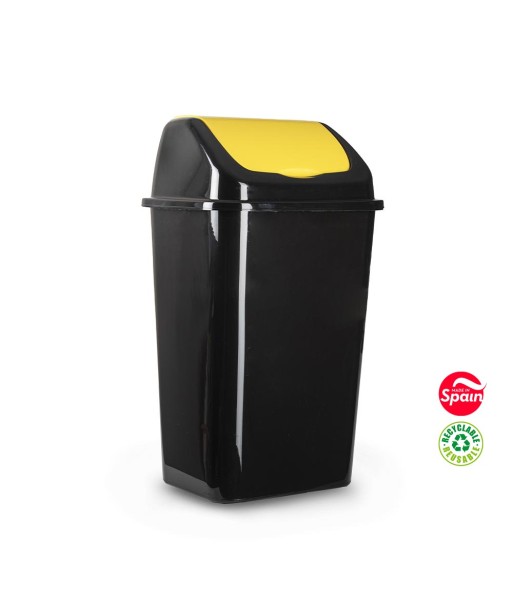 Este contentor de 30 litros tem uma tampa basculante prática e fácil de utilizar.¶¶Reutilizável¶Reciclável¶¶Cor: Preto com tampa Amarela¶Material: Plástico ¶Medidas Exteriores: 34 x 27,5 x 58,5 cm
