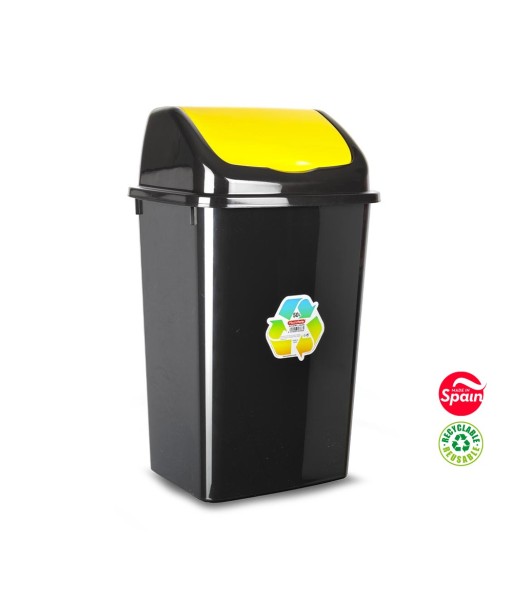 Este contentor de 50 litros tem uma tampa basculante prática e fácil de utilizar.¶¶Reutilizável¶Reciclável¶¶Cor: Preto com tampa Amarela¶Material: Plástico ¶Medidas Exteriores: 40 x 35 x 68,5 cm ¶