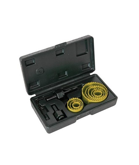 Para madeira¶Profundidade de corte máximo: 25mm¶¶8 SERROTES CIRCULARES¶3/4 "(19mm)¶7/8 "(22mm)¶1-1/8 "(29mm)¶1-1/4 "(32mm)¶1-1/2 "(38mm)¶1-3/4 "(44mm)¶2 "(51mm)¶2-1/2 "(64mm)¶¶2 MANDRIS¶Haste sextavada com 6 × 60 milímetrosc om broca piloto ¶Encaixe de serrotes circulares 1-1/4 "-5" (32-127mm)¶Haste hexagonal, encaixe de serra 3/4 "-1-3/16" (19-30mm)¶¶1 chave da chave hexagonal: 2.5mm¶¶Tipo de embalagem: Blister Duplo¶¶