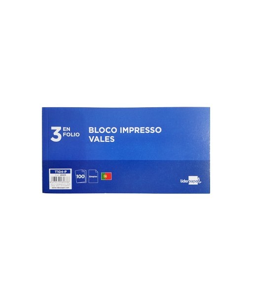 Bloco Impresso Vale de caixa simples¶Formato 3 em fólio ao baixo¶Medidas: 205x112 mm