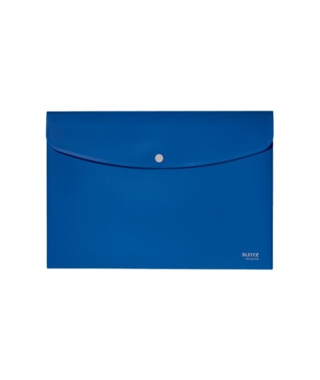 Bolsa de documentos PP premium e apelativa, ideal para uso diário na escola, escritório e casa.¶Com fecho de botão de pressão, evita que os documentos deslizem para fora.¶Fabricada com 80% de plástico reciclado, 100% reciclável e certificada pelo selo ambiental Blue Angel.¶¶Com a gama ecológica Leitz Recycle, pode melhorar tanto o ambiente do seu escritório como o meio ambiente do nosso planeta.¶¶Ideal para transportar ou proteger documentos até formato A4, pequenos apontamentos, fotografias e outros acessórios¶Capacidade para 60 folhas A4 (80 g/m²)¶Livre de ácidos e seguro para cópias¶Material opaco, garantindo a proteção de dados sensíveis pessoais ou empresariais¶Leve, durável e reutilizável¶Apenas etiqueta - sem desperdício adicional de embalagens¶¶Cor: Azul¶Medidas: 235 x 7 x 313