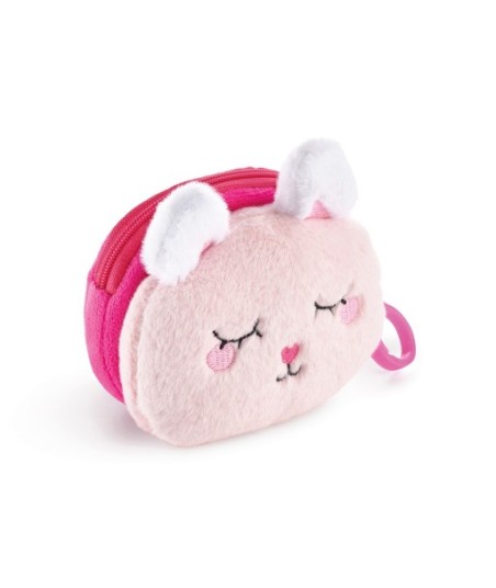 Mini carteira em forma de coelho para organizar moedas ou objetos pequenos. ¶Fecho de correr.¶Com porta-chaves¶¶Material: poliéster com efeito felpudo e pormenores bordados.¶¶Porta Moedas - 95x95x60mm¶Caixa - 100x100x63mm