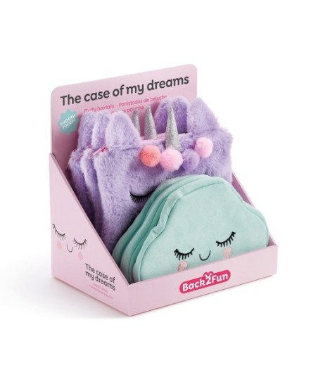 EXPOSITOR IDEAL PARA PONTOS DE VENDA¶¶Estojos de peluche em forma de unicórnio e de nuvem com pormenores bordados. ¶Fecho de correr. ¶¶Material: poliéster.¶¶Conteúdo: 6 unidades, 3 de cada modelo.