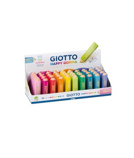 VENDIDO EM EXPOSITOR com 40 unidades !! Ideal para Pontos de Venda !!¶¶Giotto Happy Gomma.¶Borracha super divertida e colorida da Giotto em forma de um lápis. ¶Ideal para apagar os traços do lápis de grafite. ¶Possui um apagar bastante suave. ¶Fácil de se guardar no estojo.¶¶Disponível em 10 cores clássicas: Rosa, Magenta, Coral, Laranja, Amarelo, Verde Maçã, Verde Prado, Azul Claro, Azul, Lilás