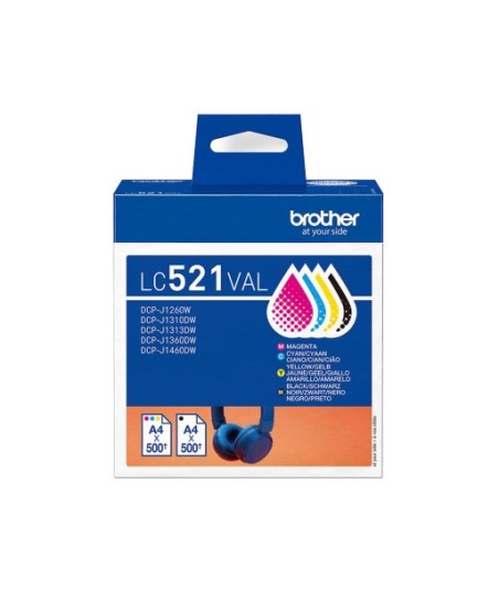 Pack Tinteiros Brother LC521VAL 4 Cores 500 Pág.