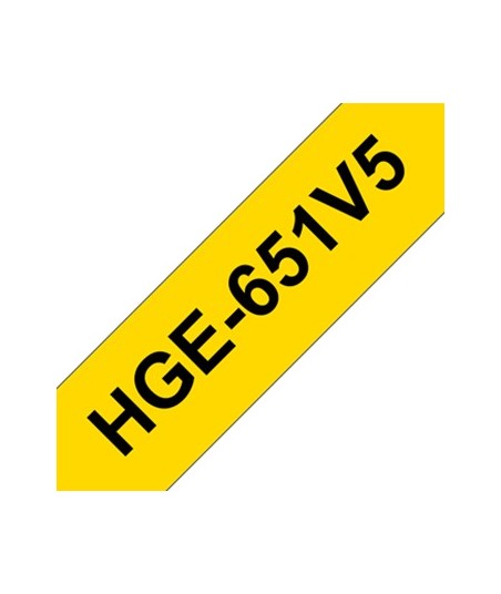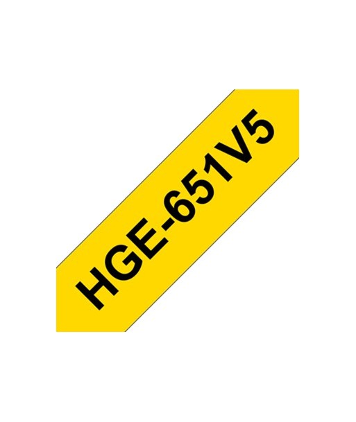 Fita HGe de alta qualidade para rotuladora eletrónica.¶Concentração de bisfenol A inferior a 0,1% em massa. (de acordo com a legislação em vigor).¶¶Características principais¶Maior resolução ou maior velocidade¶Texto preto sobre fundo amarelo¶24 mm de largura¶8 metros de comprimento¶Caixa de 5 unidades¶¶Utilizável nos equipamentos que mostram o logotipo HG e HGe. ¶Tem duas propriedades adicionais sobre as fitas laminadas standard: maior resolução ao imprimir para uma melhor leitura da etiqueta ou permitem imprimir etiquetas a maior velocidade, ideal para profissionais que têm que imprimir muitas etiquetas ao mesmo tempo. Utilizadas para uma etiquetagem no geral em superfícies lisas e planas, são etiquetas claramente legíveis por muito tempo. ¶As fitas laminadas da Brother estão desenhadas para durar, inclusivamente sob condições extremas e são capazes de aguentar temperaturas extremas, luz solar, água, substâncias químicas ou abrasão. ¶Há muitas fitas laminadas disponíveis numa grande variedade de cores e tamanhos para usar a etiqueta mais adequada em cada ocasião.¶¶
