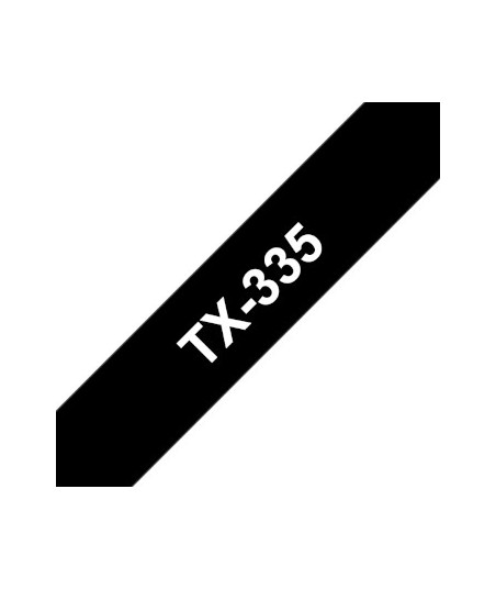 Fita laminada. ¶Texto branco sobre fundo preto. ¶Largura: 12 mm. ¶Comprimento: 15 m¶¶Equipamentos relacionados:¶PT7000/ PT8000 e rotuladoras com conexão ao PC