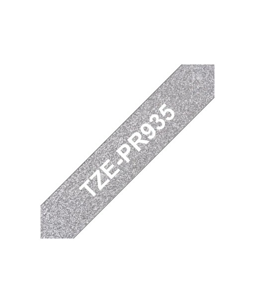 Texto branco sobre fundo prata premium.¶¶Largura: 12mm¶Comprimento: 8m¶¶Para imprimir etiquetas com uma rotuladora eletrónica P-touch.¶Concentração de bisfenol A inferior a 0,02% em massa. (de acordo com a legislação em vigor).