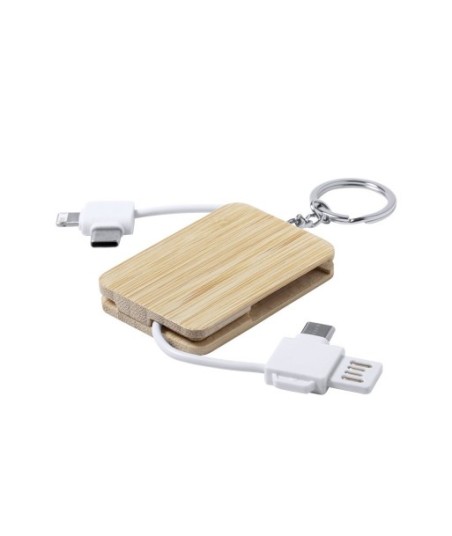 Carregador porta-chaves de linha nature e design compacto.¶Feito em bambú a partir de cortes naturais. ¶Conexões Tipo C (entrada e saída) e dual micro USB-Lightning, com sistema USB reversível que facilita a conexão à fonte de alimentação. ¶Ampla superfície de impressão. ¶Apresentado em bolsa individual auto-vedante de design eco.¶Conexão Micro USB, Tipo C e Lightning 5V DC 2.0A¶¶Medidas: 4 x 10 x 0.8 cm / 20g