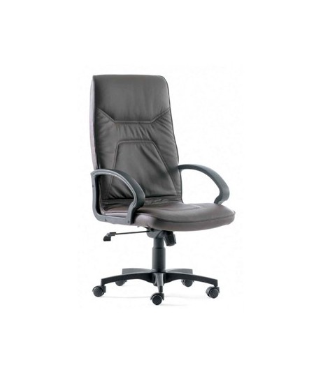Costas: Alta, Resvestida, Espuma flexível¶Assento: Revestido, Espuma flexível¶Base: Giratória, Poliamida preta¶Mecanismo: Oscilante¶Braços: Fixos¶Revestimento: Semi-pele preto