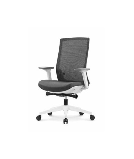CADEIRA OPERATIVA GIRATÓRIA MOSS¶¶A cadeira Moss foca a sua atenção no conforto através de costas com uma curvatura agradável e no uso interessante das cores de materiais. O seu design elimina a tradicional banda de suporte lombar, optando-se por uma regulação lateral independente. Destacam-se ainda as características de ajuste bastante completas dos braços. ¶¶Costas: Alta em Rede cinza escura, limitada por aro em polipropileno, com apoio lombar regulável em altura. ¶Assento: Revestido, com interior em espuma de poliuretano moldada. Regulável em profundidade.¶Sistema de elevação a gás, com amortecimento suave, para ajustamento da altura do assento.¶Regulação em profundidade, num curso de 4 cm, com retorno automático à posição inicial.¶Mecanismo sincronizado do assento e costas, com bloqueio e desbloqueio da inclinação das costas em 4 posições. ¶Material revestimento: Ambos em Tecido.¶Composição: 100% Poliester¶Braços: Reguláveis em altura, profundidade e orientação. Com topo macio. ¶Base giratória: Poliamida.¶Mecanismo: Sincronizado. Regulação automática da tensão.¶ ¶Cor Rede: Cinza Escuro¶Cor Aro: Branco¶Cor Assento: Cinza Escuro¶Cor Base: Branco ¶Cor Rodas: Preto ¶¶Altura Regulável: 97-107cm¶Largura: 65cm¶Altura do Assento: 42-52cm¶Profundidade do Assento: 47-51cm ¶¶
