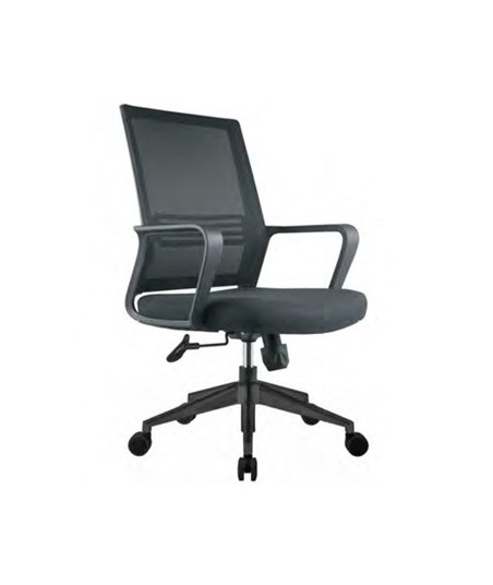 Costas: Médias, Rede preta.¶Assento: Revestido, Espuma moldada.¶Base: Giratória, Poliamida preta.¶Mecanismo: Sincronizado.¶Braços: Fixos.¶Revestimento: Tecido preto.¶¶Com apoio lombar regulável em altura.¶Mecanismo auto syncron, com regulação da tensão da costa, conjunto costa e assento reclinável.¶Sistema de elevação a gás.¶Certificação SGS G TUV¶Base de 5 astes em poliamida preta¶Rodizios de bandagem dupla com 60mm¶Auto-lubrificável¶¶
