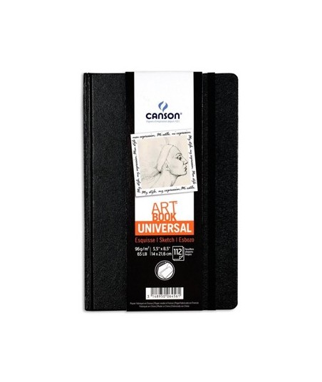 Art Book Universal¶¶Com os cantos arredondados é fácil de transportar e é mais durável. Tem também um útil bolso para guardar papeis soltos. O seu fecho elásticoé inovador:ao ser unido no interior não fica solto mantendo o seu aspecto estético.¶¶Com as suas 112 folhas de papel permanente para desenho Canson® Crob'Art®, os diários gráficos Canson® ArtBook Universal são todo o terreno e duráveis em todos os sentidos.¶¶Papel branco, com pouca gramagem (96 g/m²), ligeiramente esponjoso e textura fina, foi especialmente desenvolvido para estudos e esboços rápidos a lápis, carvão, sanguina. Aguenta lavagens leves e é muito fácil de apagar.¶¶Ideal para: Lápis de grafite, pastel, carvão e canetas de feltro.¶Também adequado para escrever e fazer notas.¶¶Caderno A5 grão fino¶14x21,6 cm¶96gr¶112 Folhas¶¶Livre de ácido¶Não tem quaisquer aditivos óptico branqueadores¶Está em conformidade com a norma ISO 9706¶