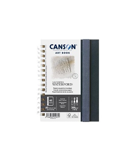 Saunders Waterford® Art Book contém papel requintado para aguarela, fabricado tradicionalmente numa máquina de forma redonda.¶É o papel aguarela de maior qualidade fabricado pela St. Cuthberts Mill e conta com o selo da Royal Watercolor Society (Sociedade Real Aguarela). É fabricado com 100% algodão, a qualidade mais alta de material de papel para se conseguir os mais elevados padrões. Cada folha é tamponada com carbonato de cálcio para ajudar a proteger os trabalhos da descoloração causada pelos ácidos presentes na contaminação armosférica.¶¶A sua superfície atractiva cria-se usando feltros de lã natural que proporcionam uma textura aleatória muito distinta. A superfície é impregenada com gelatina que a torna mais forte e resistente a raspagens e outros tratamentos mais agressivos.¶¶Grão fino¶Branco¶Diário Gráfico¶Espiralado Lado Longo (Retrato)¶¶A5 - 14,8 x 21 cm¶300g¶40 Folhas¶¶100% algodão¶Fabricado em forma redonda¶Livre de ácido¶Não tem quaisquer aditivos óptico branqueadores¶Possui tratamento anti-fungos