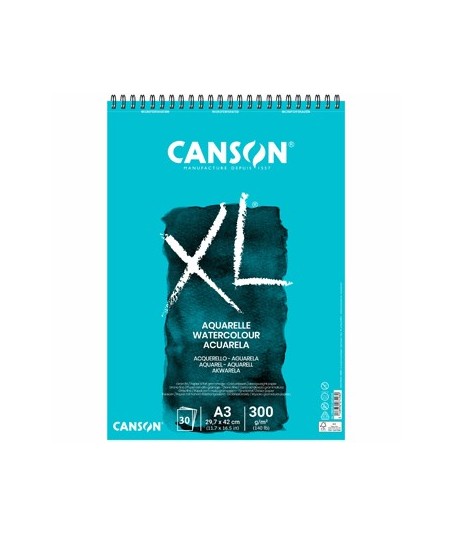 Bloco Espiralado Canson XL® Aquarelle¶¶XL® Aquarelle é um papel especialmente desenvolvido para técnicas húmidas incluíndo a aguarela. Perfeito para estudantes, é muito fácil de corrigir com uma esponja ou um pincel.¶¶Ideal para um ampla variedade de técnicas húmidas. ¶Apresenta grão fino e é livre de ácidos. ¶A sua fórmula assegura uma excelente capacidade de remoção do excesso de água.¶Argolas em espiral do lado mais curto.¶¶Bloco A3 de grão fino¶29,7x42 cm¶300gr¶30 Folhas¶¶Não tem quaisquer aditivos óptico branqueadores¶Possui tratamento anti-fungos¶Está em conformidade com a norma ISO 9706¶Certificação FSC